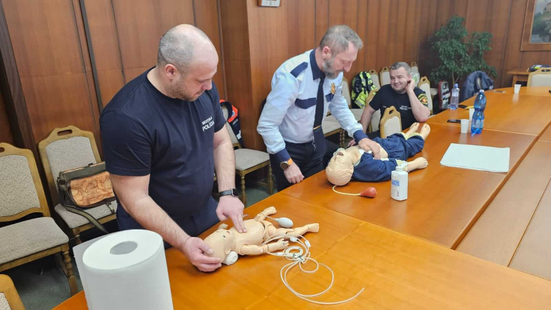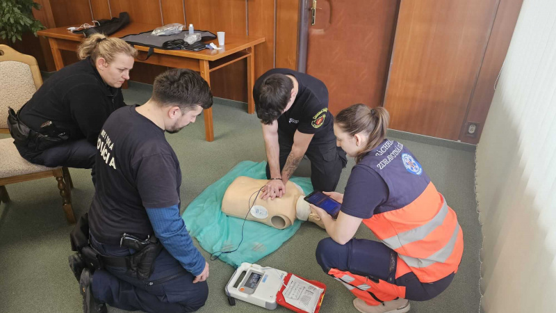 Pozrite si fotografie zo školenia prvej pomoci pre Mestskú políciú Zvolen za pomoci AED Defibrilátora CardioAid1